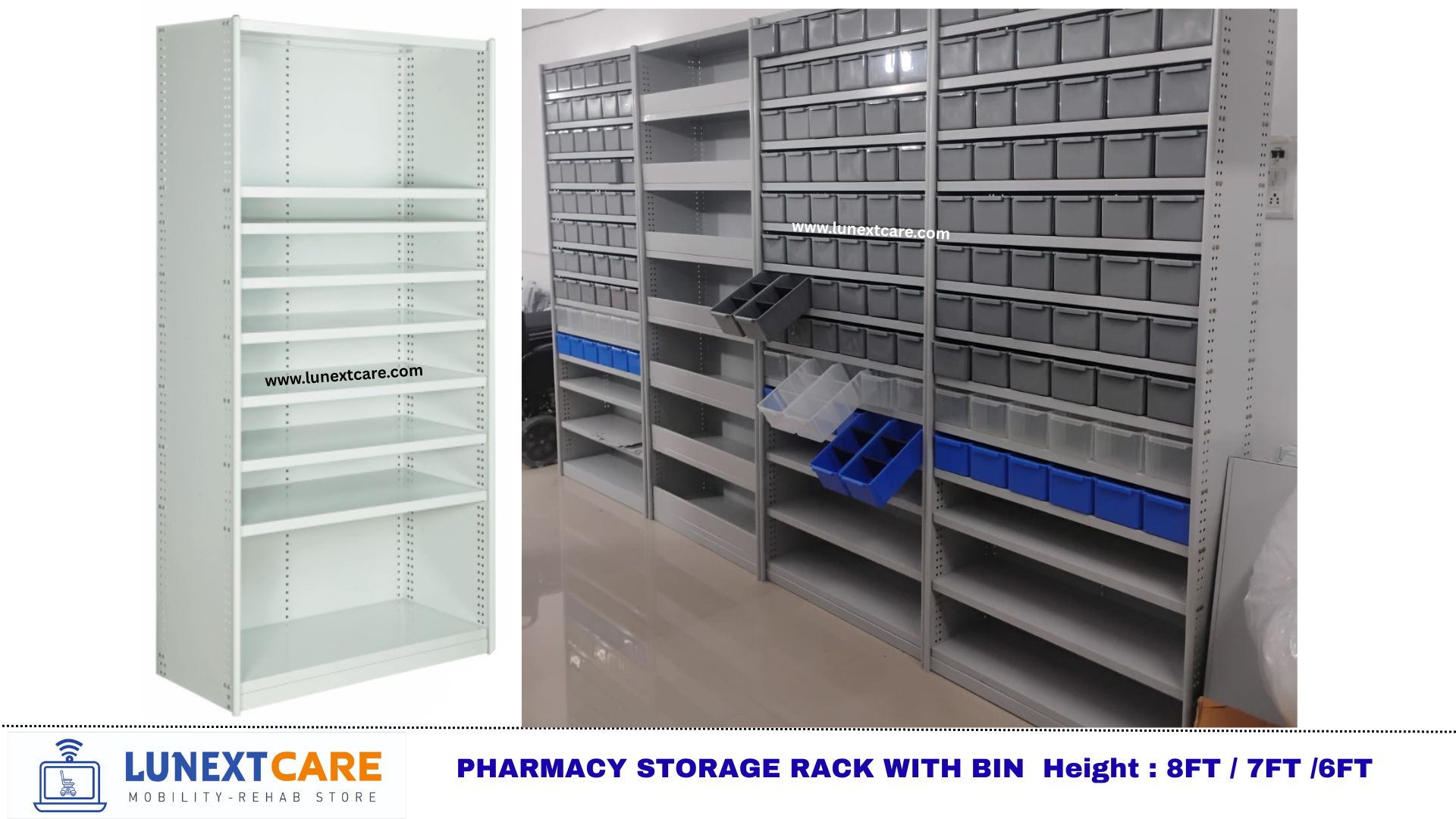 LUNEXT PHARMACY RACKS PROJECTS – LUNEXT HEALTH CARE offers customized pharmacy racks tailored to specific needs. LUNEXT products are manufactured in Chennai and are available at competitive rates, aimed at enhancing pharmacy organization and efficiency with durable, modular storage solutions.