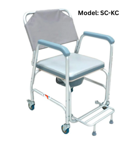 Model: SC-KC – Shower commode , Aluminium frames comes with commode & can roll over western commode- Compact Max load: 100kg