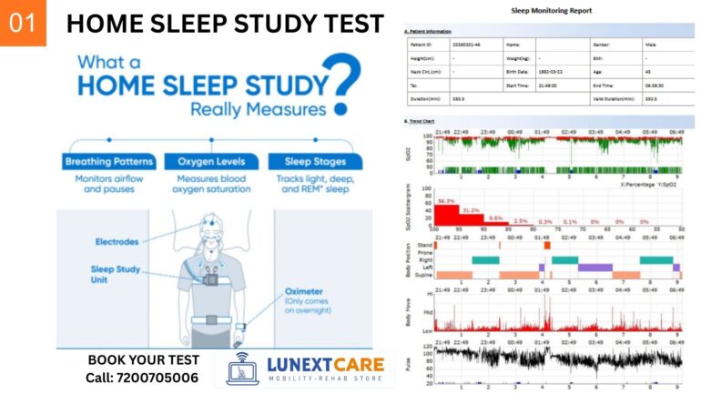 LUNEXT Specialized Home Sleep Apnea Test (HSAT), also known as a Home Sleep Study, is a convenient way to diagnose Obstructive Sleep Apnea (OSA) without staying overnight in a hospital. In Chennai, this service is widely available through home healthcare providers and specialized sleep clinics.