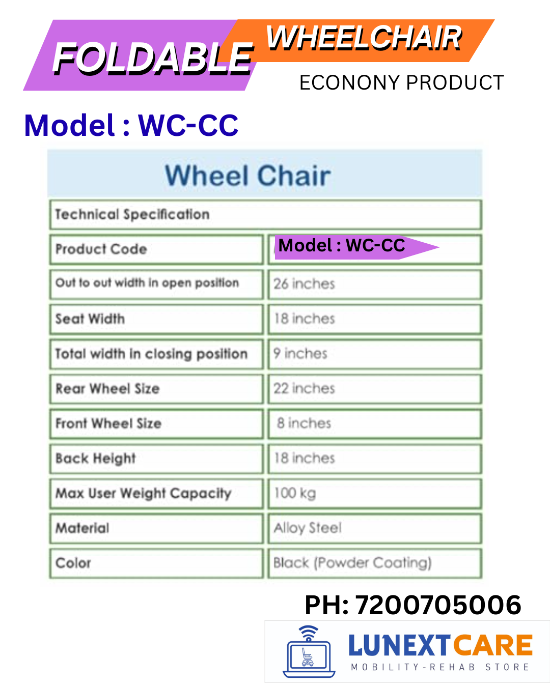FOLDABLE WHEELCHAIR chennai Best rates Economy model: WC-EC