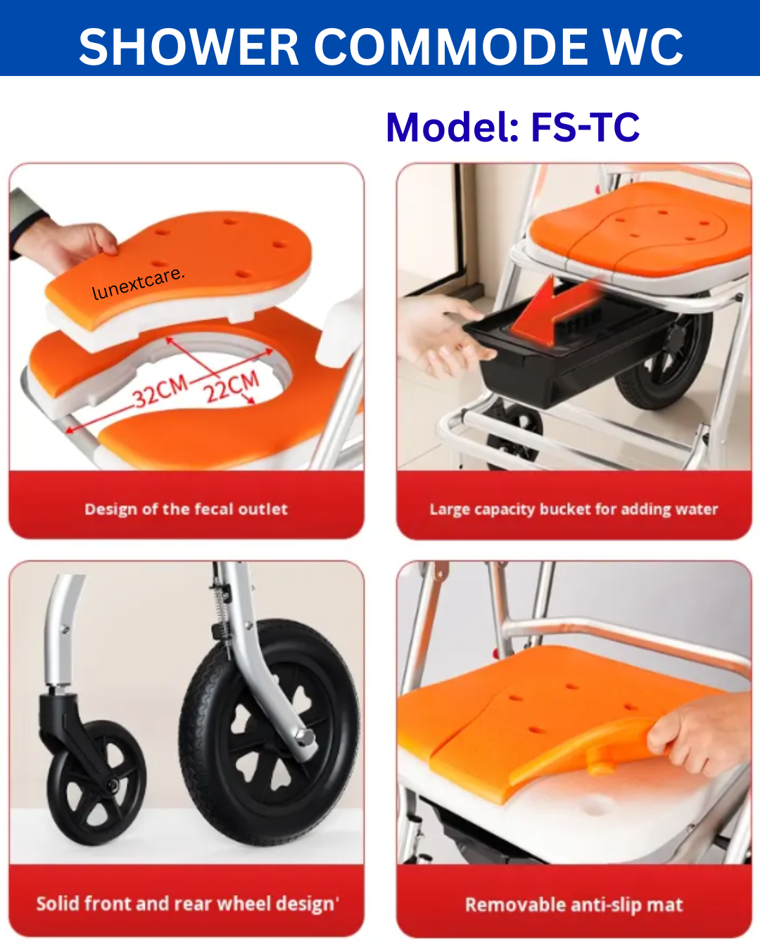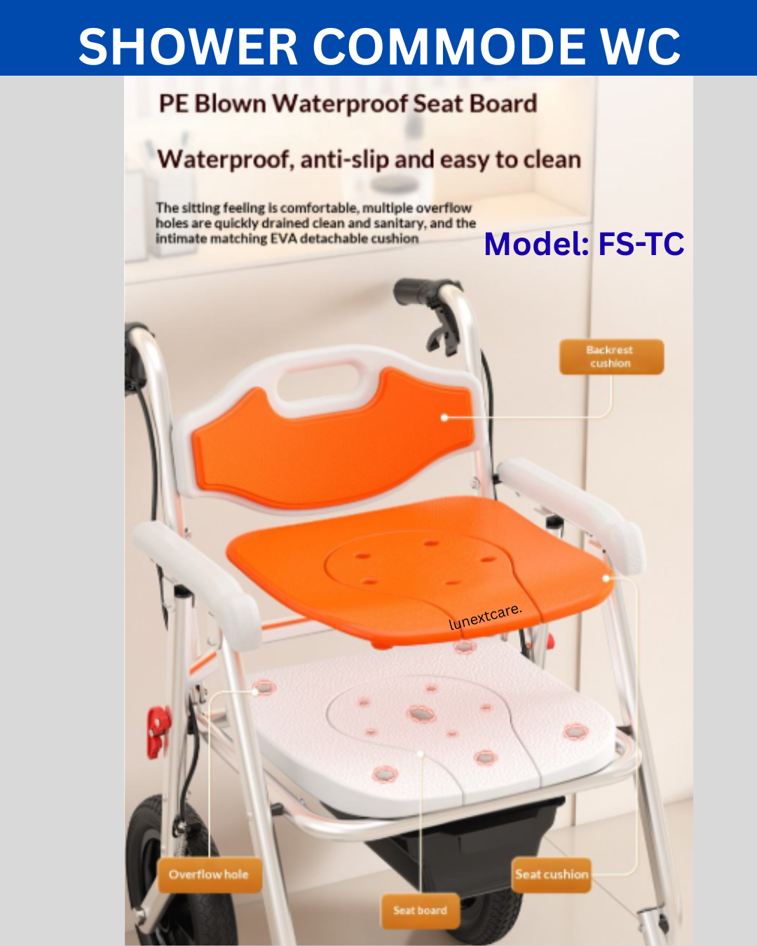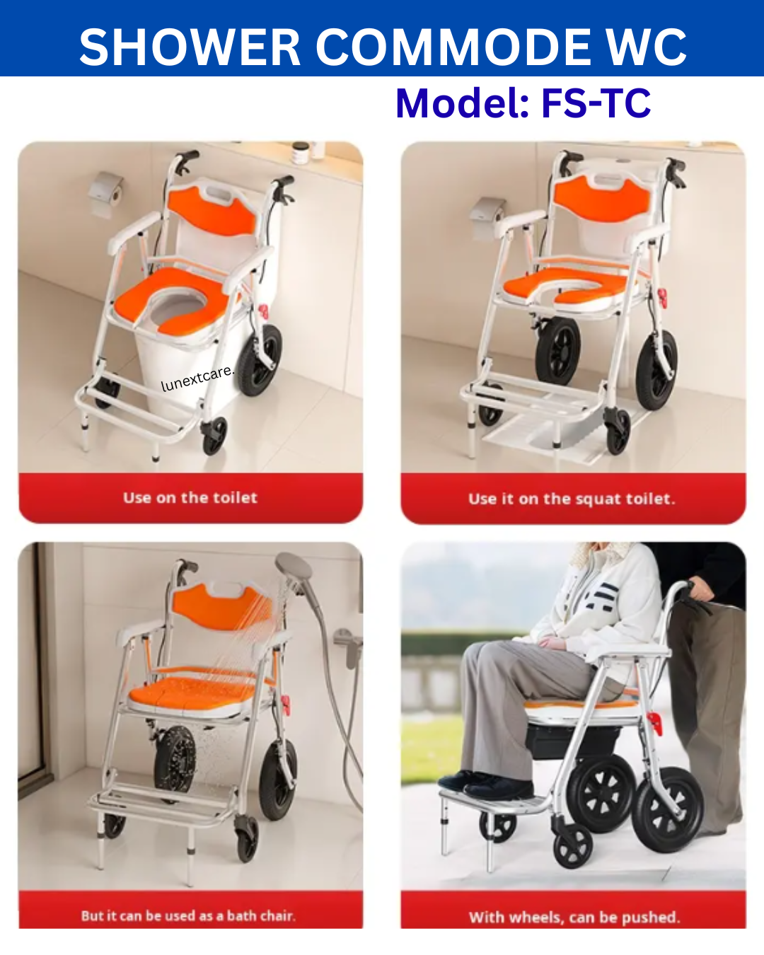 LUNEXT offers complete range of shower commode wheelchair products;